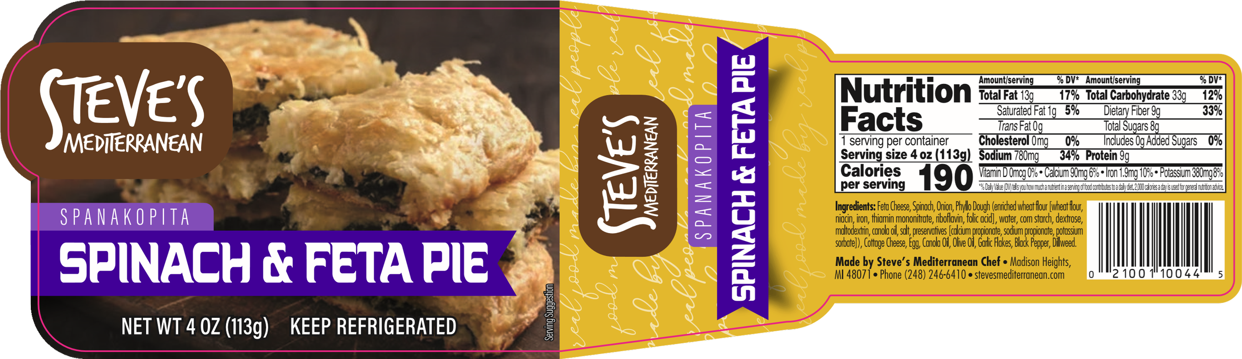 Also known as Spanokopita, Spinach & Feta Pie is a savory pastry with a filling of spinach and feta cheese inside phyllo dough crust.